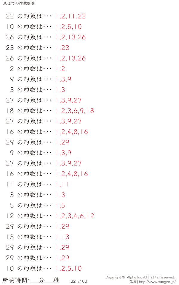 30までの約数 [解答]321/400