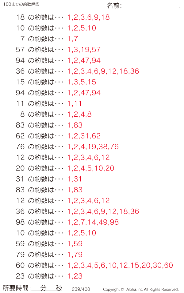 100までの約数 [解答]239/400
