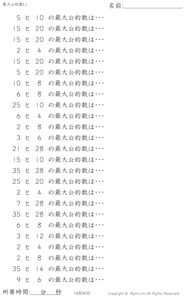 最大公約数レベル1 [問題]168/400