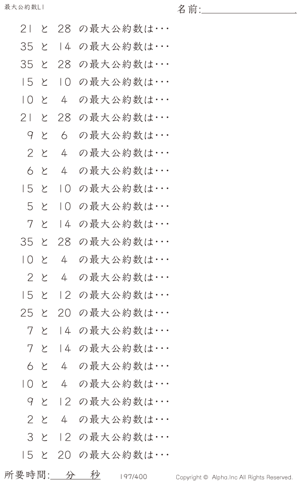 最大公約数レベル1 [問題]197/400