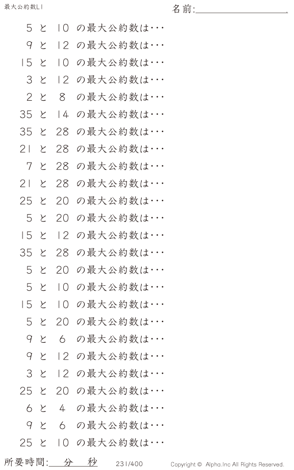 最大公約数レベル1 [問題]231/400