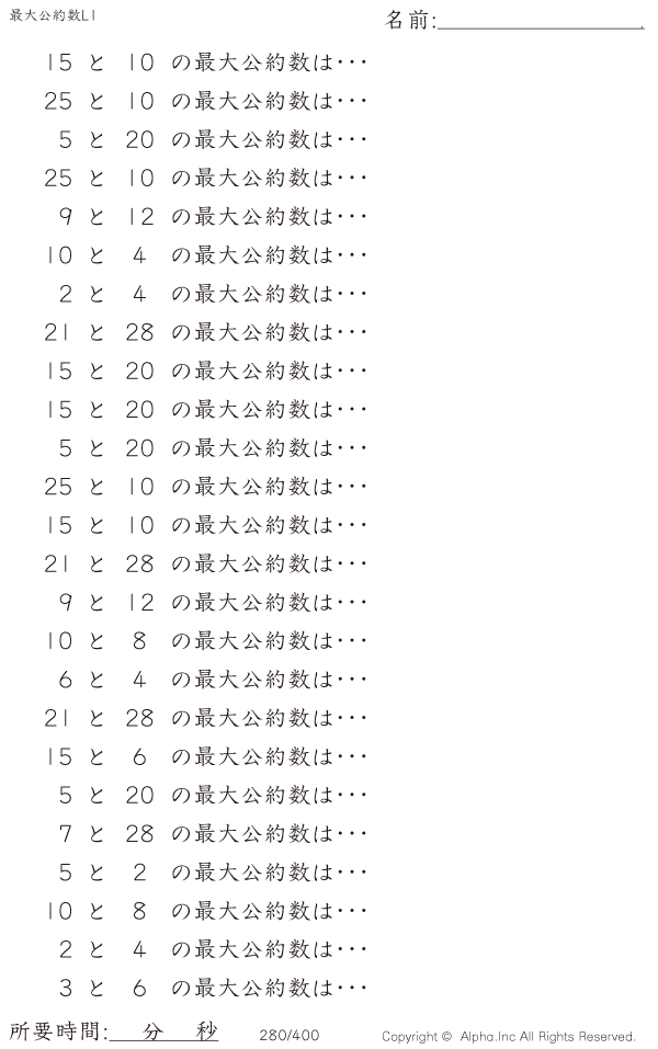 最大公約数レベル1 [問題]280/400