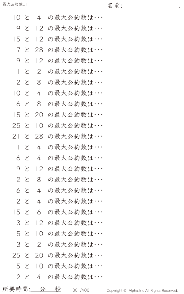 最大公約数レベル1 [問題]301/400