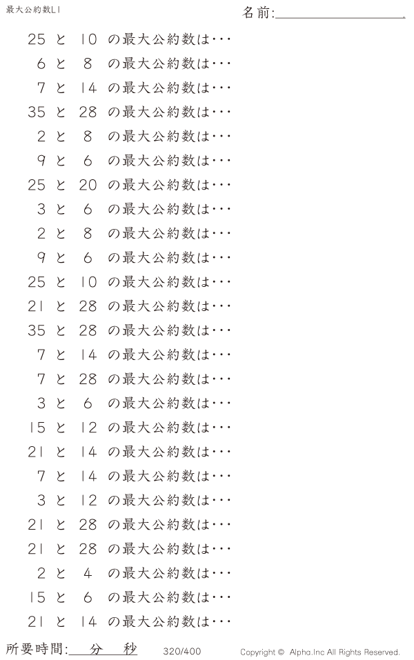 最大公約数レベル1 [問題]320/400