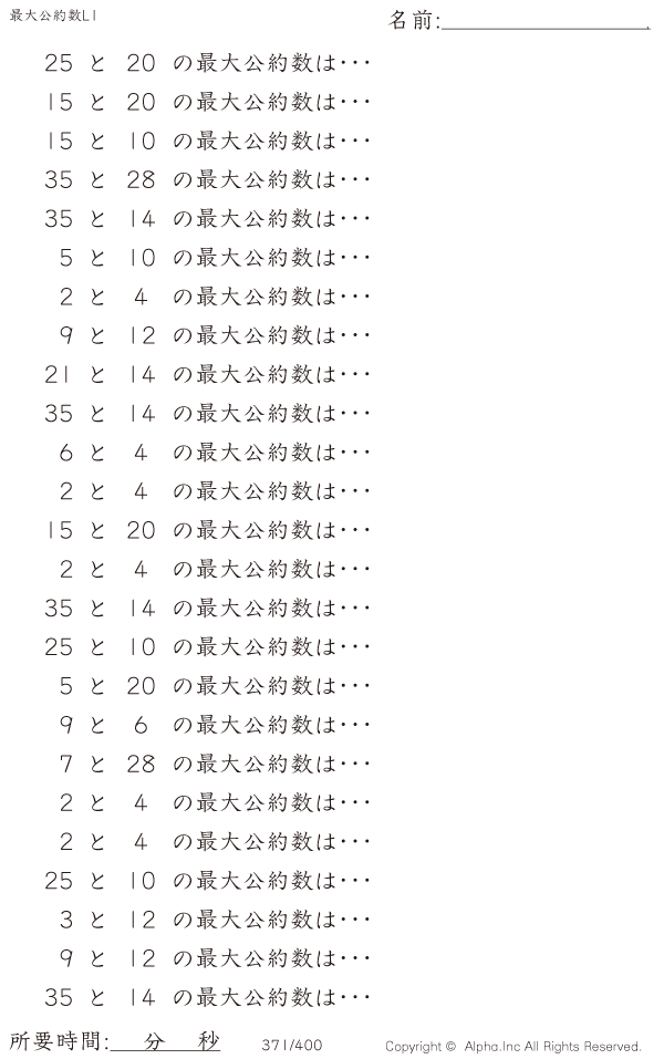最大公約数レベル1 [問題]371/400