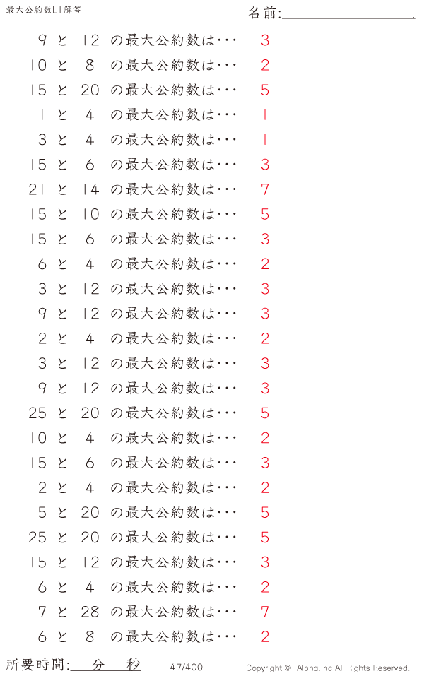 最大公約数レベル1 [解答]047/400