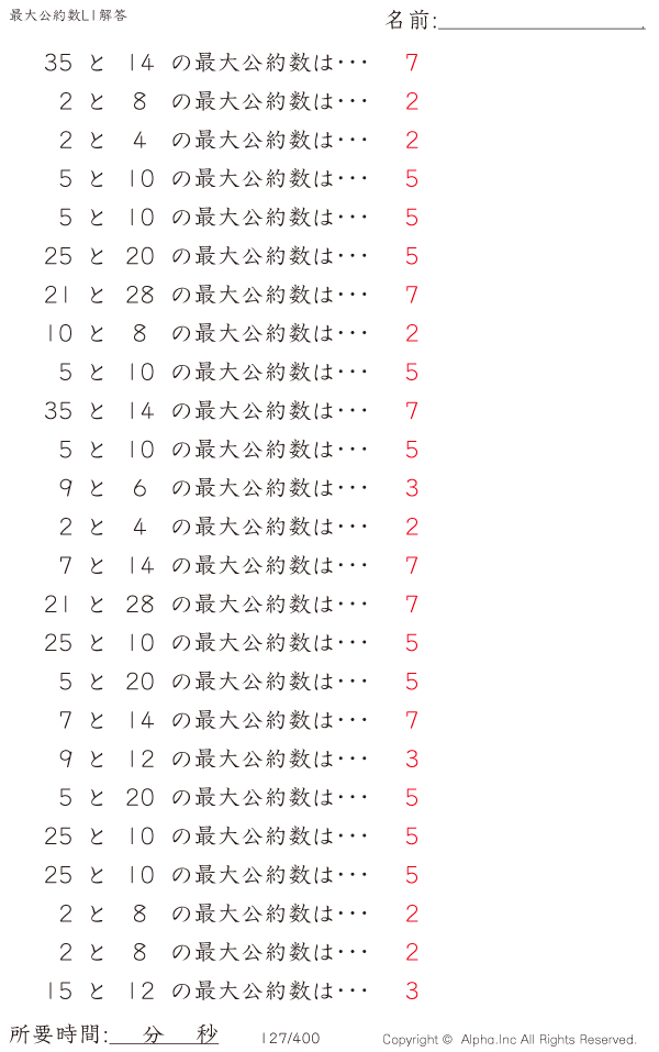 最大公約数レベル1 [解答]127/400