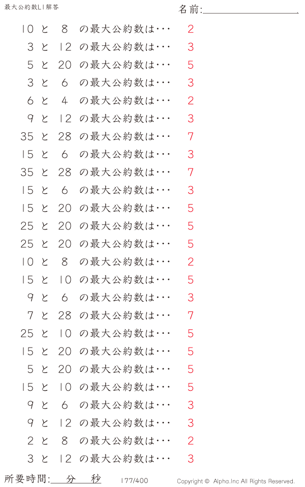 最大公約数レベル1 [解答]177/400