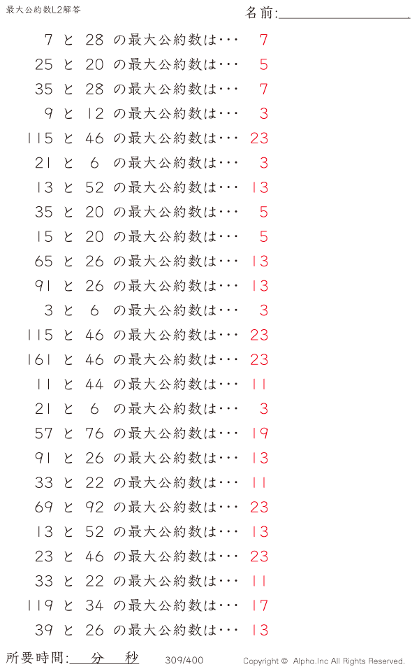 最大公約数レベル2 [解答]309/400