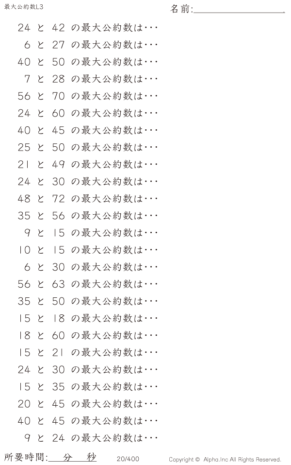 最大公約数レベル3 [問題]020/400