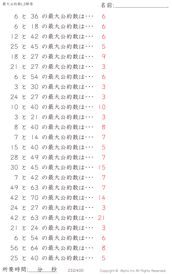 最大公約数レベル3 [解答]232/400
