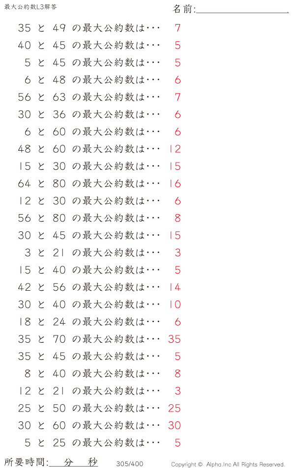 最大公約数レベル3 [解答]305/400
