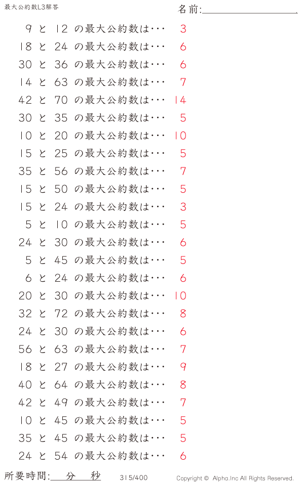 最大公約数レベル3 [解答]315/400