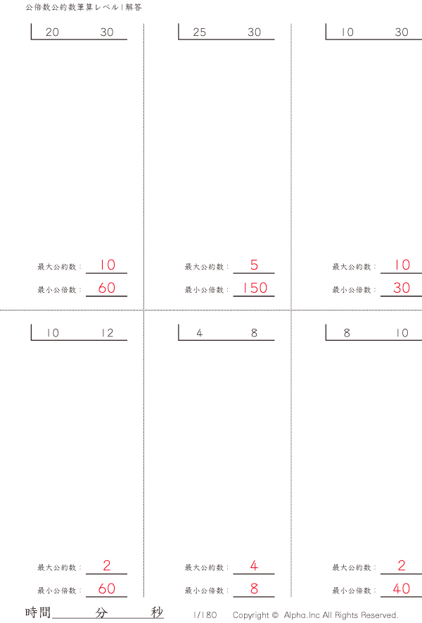 公倍数公約数の筆算-レベル1 [解答]001/180