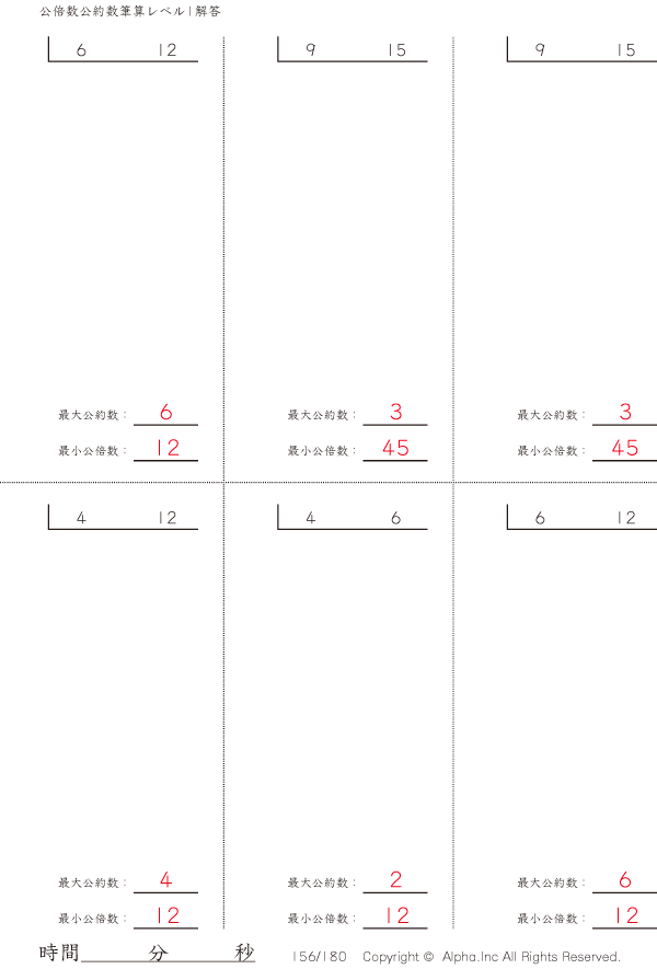 公倍数公約数の筆算-レベル1 [解答]156/180