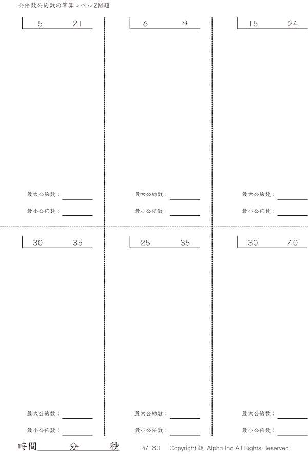 上記のボタンから「公倍数公約数の筆算-レベル2」の算数数学ドリル・計算ドリル(PDFプリント)がダウンロードできます。個人利用は無料です(家庭以外での配布は有料です)。