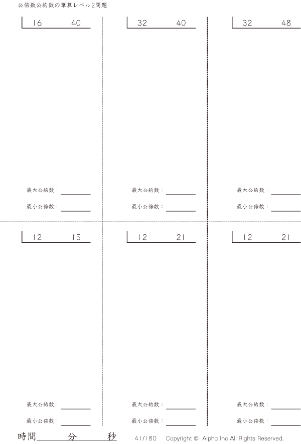公倍数公約数の筆算-レベル2 [問題]041/180