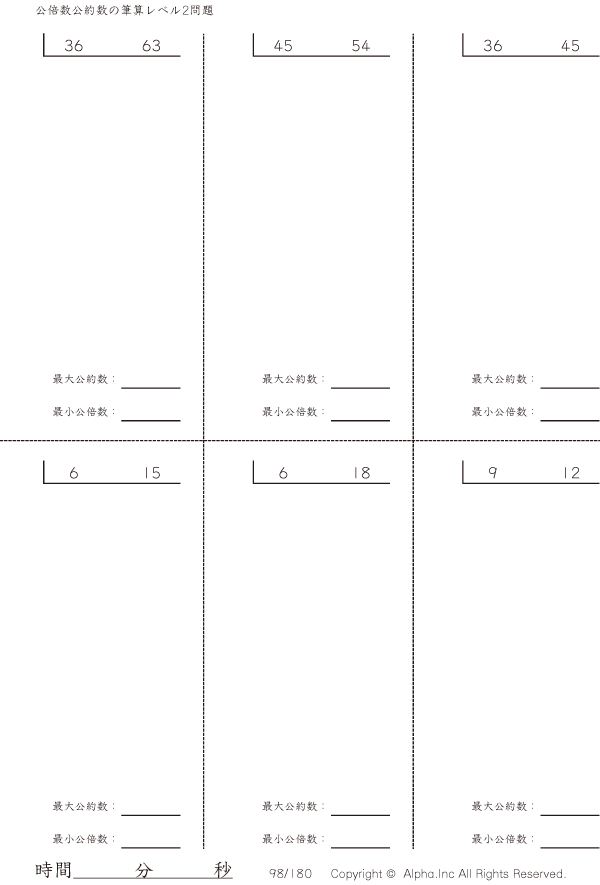 公倍数公約数の筆算-レベル2 [問題]098/180