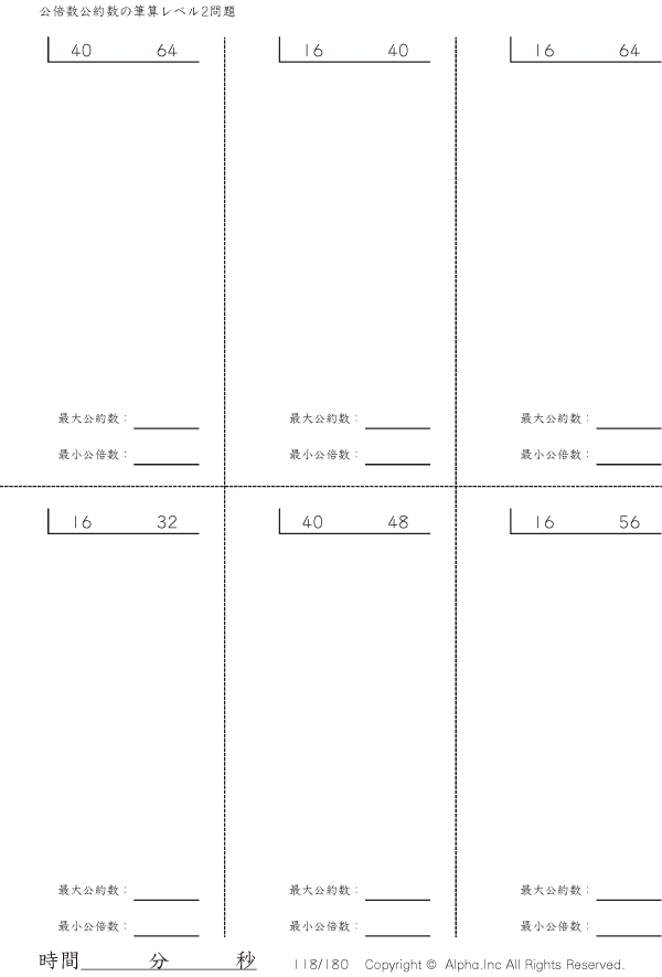 上記のボタンから「公倍数公約数の筆算-レベル2」の算数数学ドリル・計算ドリル(PDFプリント)がダウンロードできます。個人利用は無料です(家庭以外での配布は有料です)。