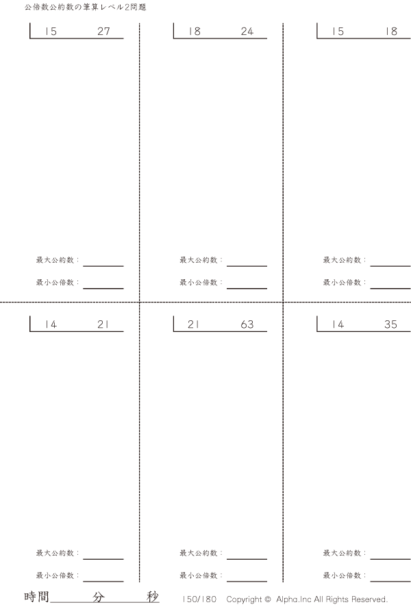 上記のボタンから「公倍数公約数の筆算-レベル2」の算数数学ドリル・計算ドリル(PDFプリント)がダウンロードできます。個人利用は無料です(家庭以外での配布は有料です)。