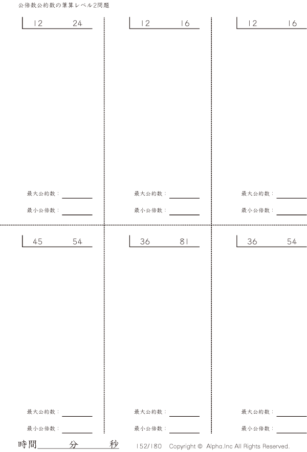 公倍数公約数の筆算-レベル2 [問題]152/180