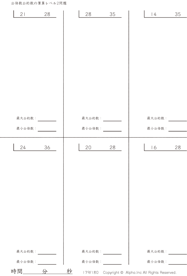 公倍数公約数の筆算-レベル2 [問題]179/180