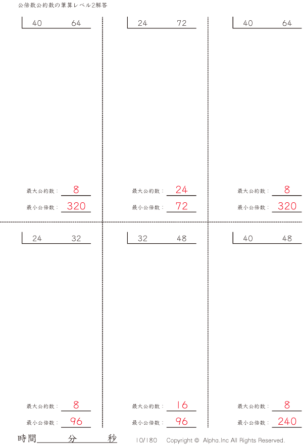 公倍数公約数の筆算-レベル2 [解答]010/180