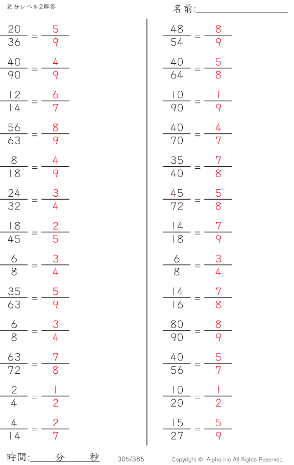 約分レベル2 [解答]305/385