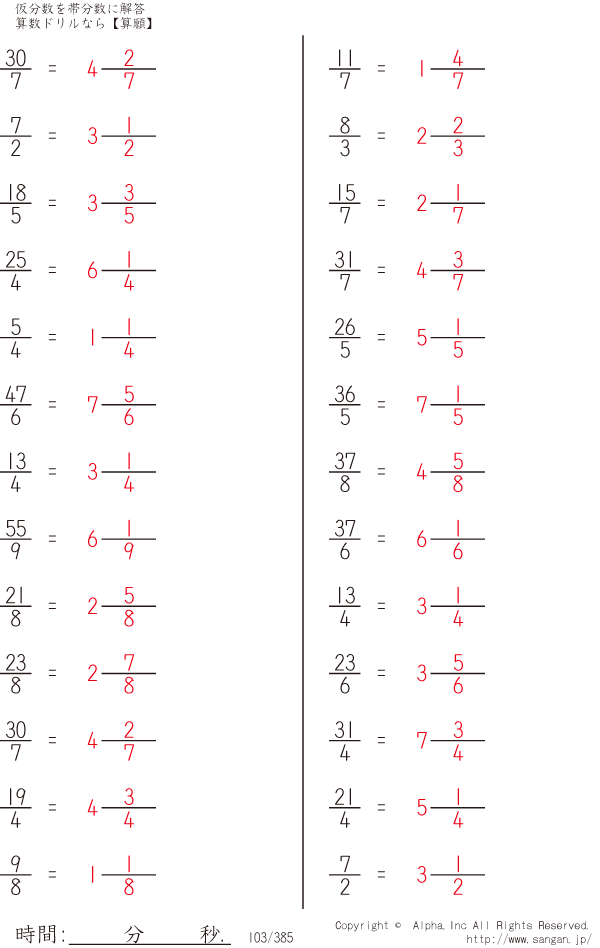 仮分数を帯分数に [解答]103/385