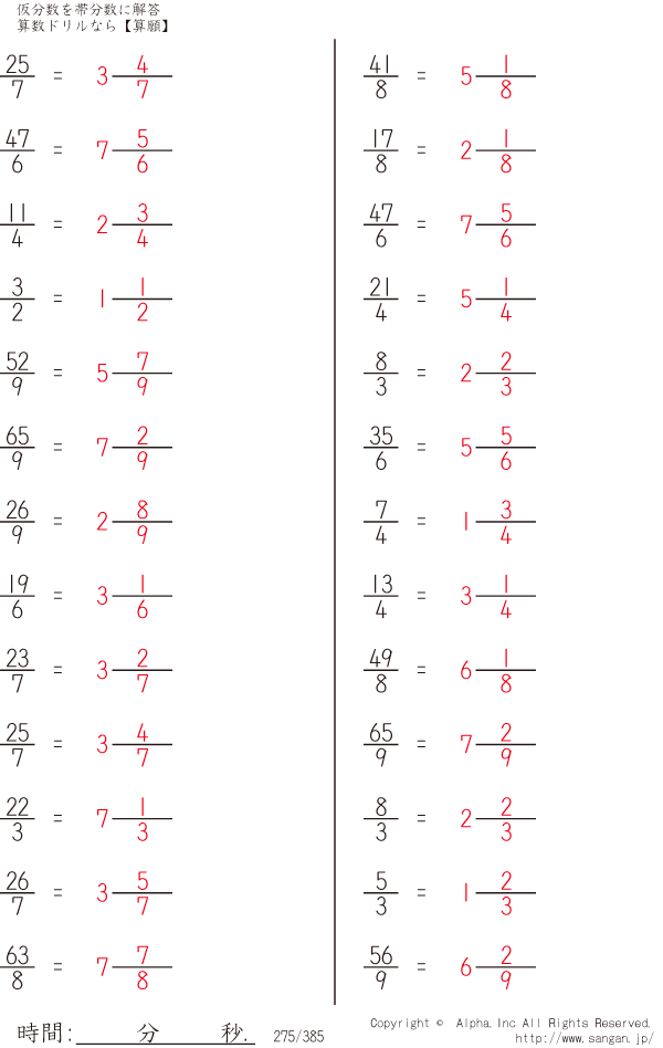 仮分数を帯分数に [解答]275/385