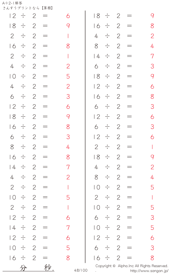 A÷2のPDFプリント あまりなし 割り切れる [解答]048/100