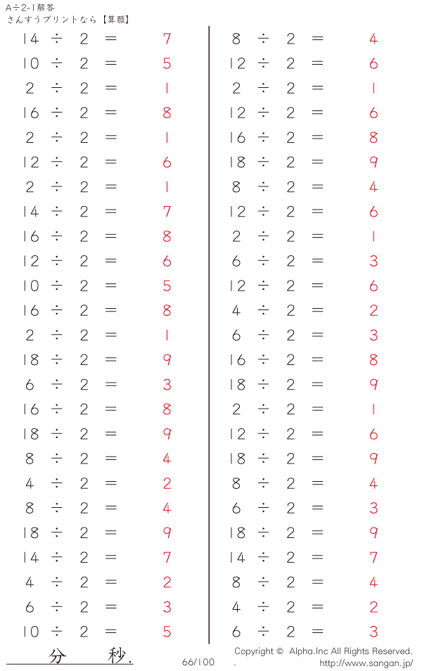 A÷2のPDFプリント あまりなし 割り切れる [解答]066/100