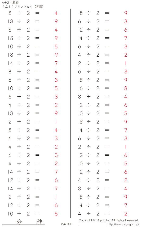 A÷2のPDFプリント あまりなし 割り切れる [解答]084/100