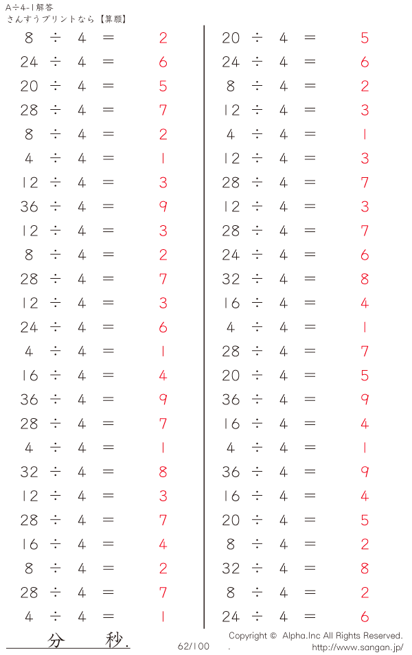 A÷4のPDFプリント あまりなし 割り切れる [解答]062/100
