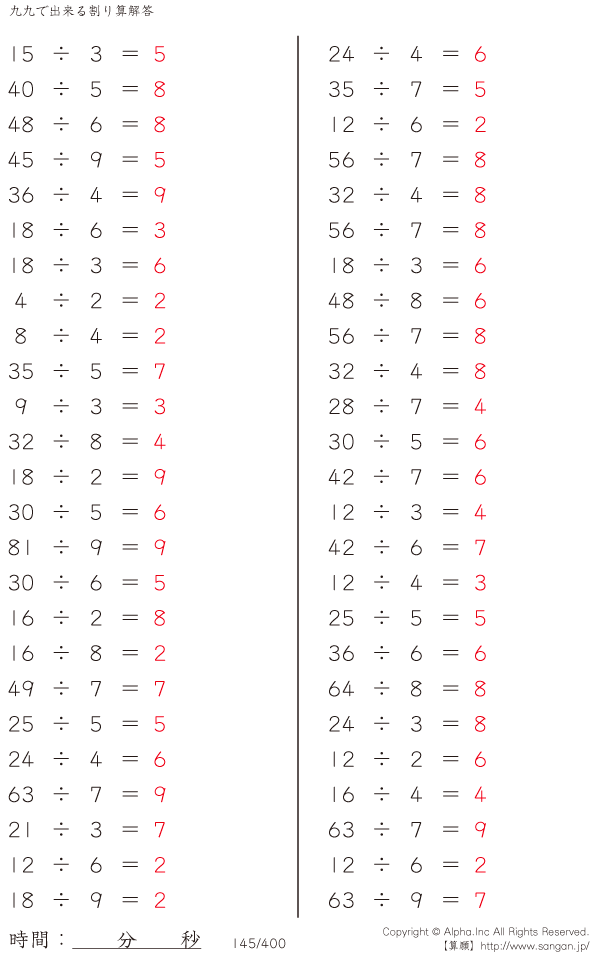 九九で出来る割り算 [解答]145/400