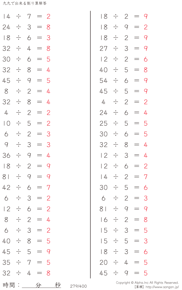九九で出来る割り算 [解答]279/400