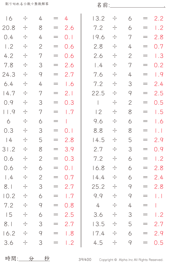 割り切れる小数÷整数 [解答]039/400