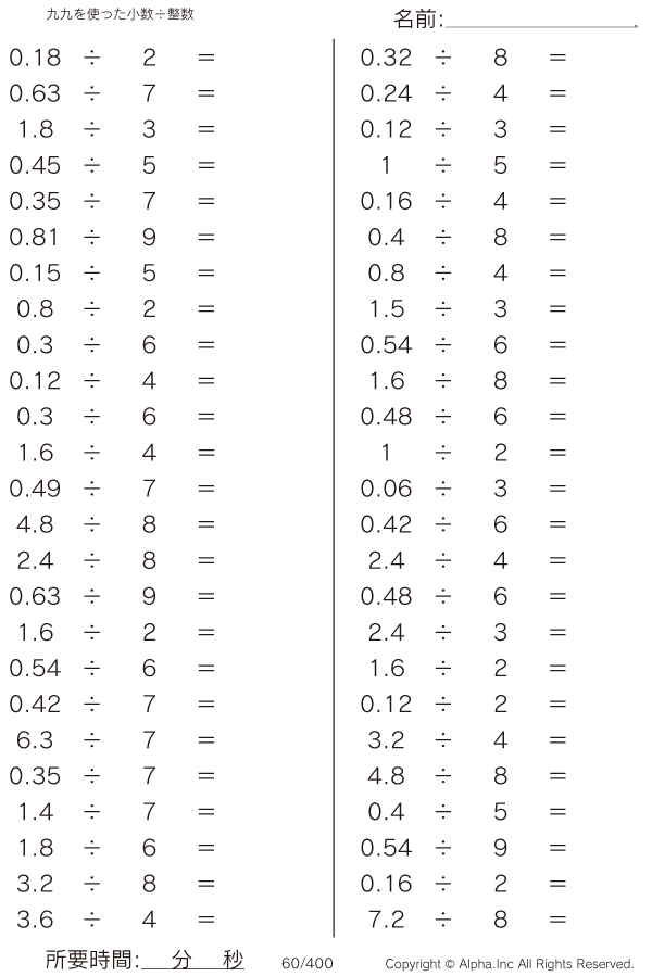 九九を使う小数÷整数 [問題]060/400