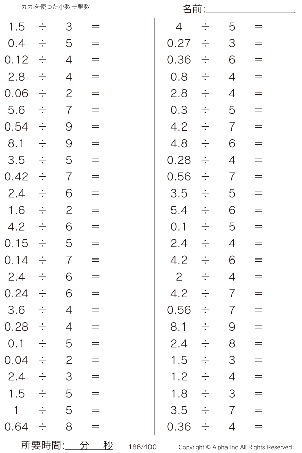 九九を使う小数÷整数 [問題]186/400