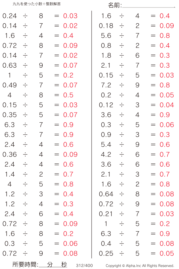 九九を使う小数÷整数 [解答]312/400