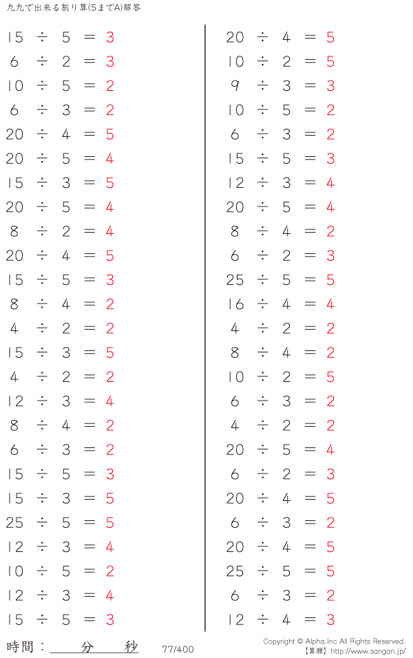 九九でできる割り算(5までA・ [解答]077/400