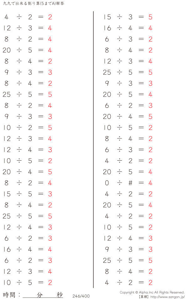 九九でできる割り算(5までA・ [解答]246/400