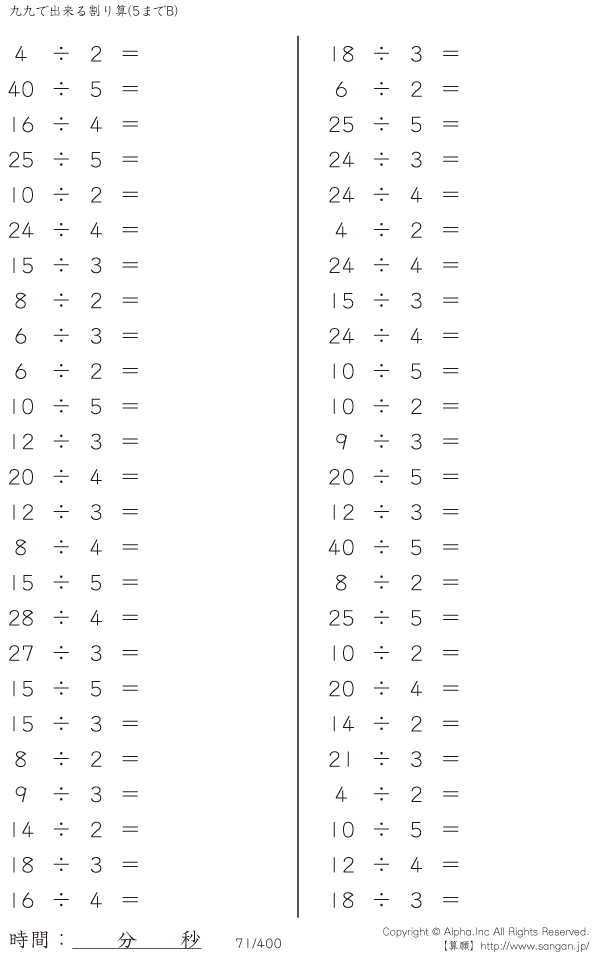 九九でできる割り算(5までB・ [問題]071/400