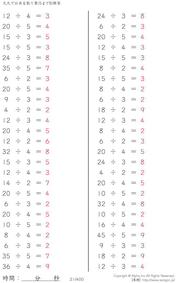 上記のボタンから「九九でできる割り算(5までB・」の算数数学ドリル・計算ドリル(PDFプリント)がダウンロードできます。個人利用は無料です(家庭以外での配布は有料です)。