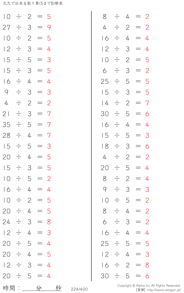 上記のボタンから「九九でできる割り算(5までB・」の算数数学ドリル・計算ドリル(PDFプリント)がダウンロードできます。個人利用は無料です(家庭以外での配布は有料です)。